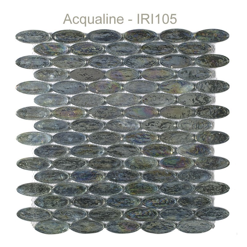 | Composition | ovale en verre irisé gris pétrole sur filet PVC découpable pour frises |