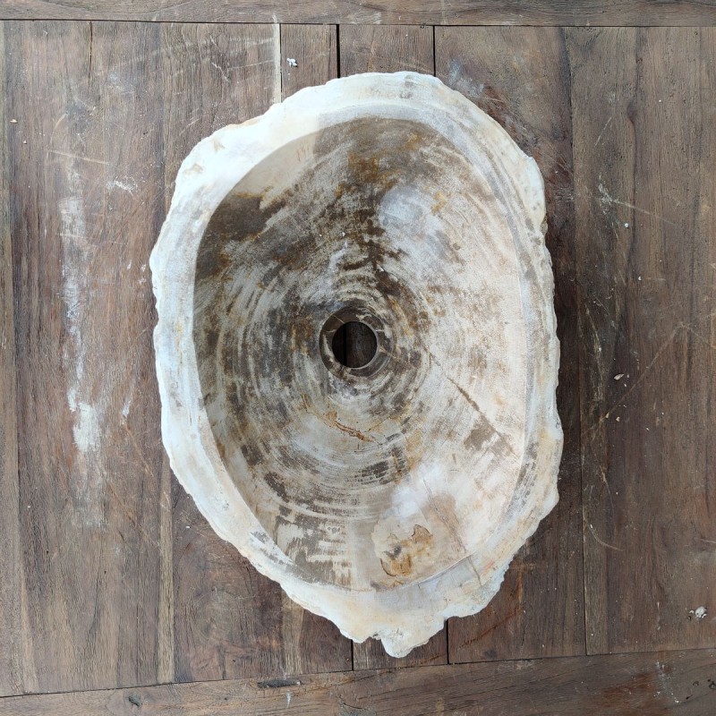 Optez pour cette vasque en bois pétrifié pour une salle de bain à l'esprit naturel.